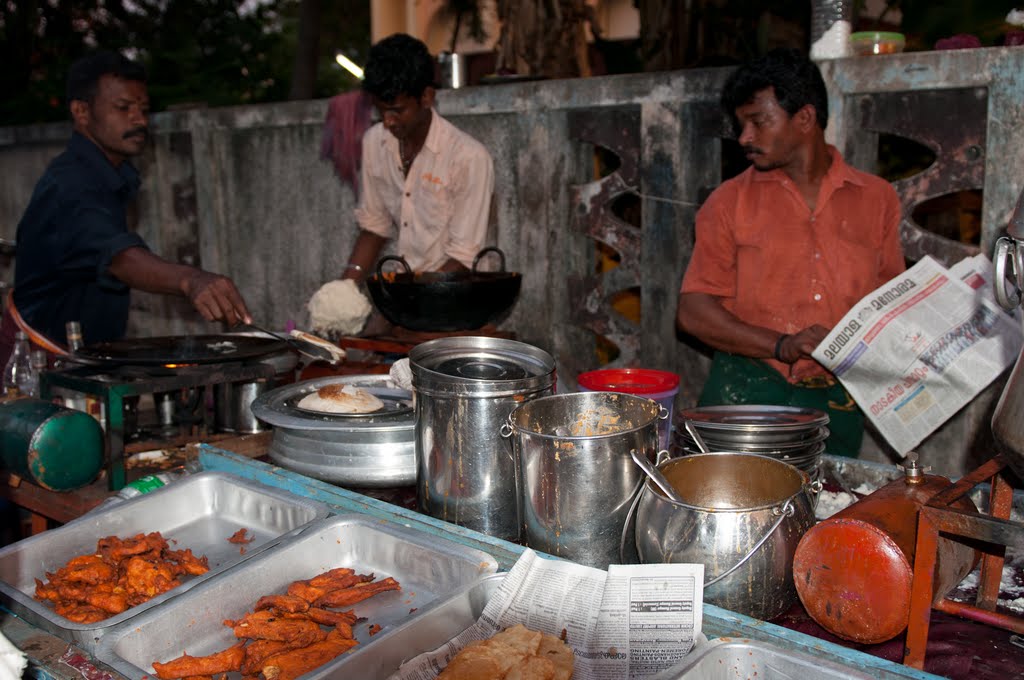 До Тривандрума (сейчас Trivandrum, а раньше он назывался непроизносимым словом Тируванантапурам) добирались также на поезде. Рядом с вокзалом зашли в забавную кафешку, находящуюся в какой-то то ли водонапорной то ли пожарной башне - столики с самого низа тянутся вверх по спирали Оказалось к тому же, что это сетевое кафе под названием Indian Coffe House, которое мы не раз еще встречали в Керале